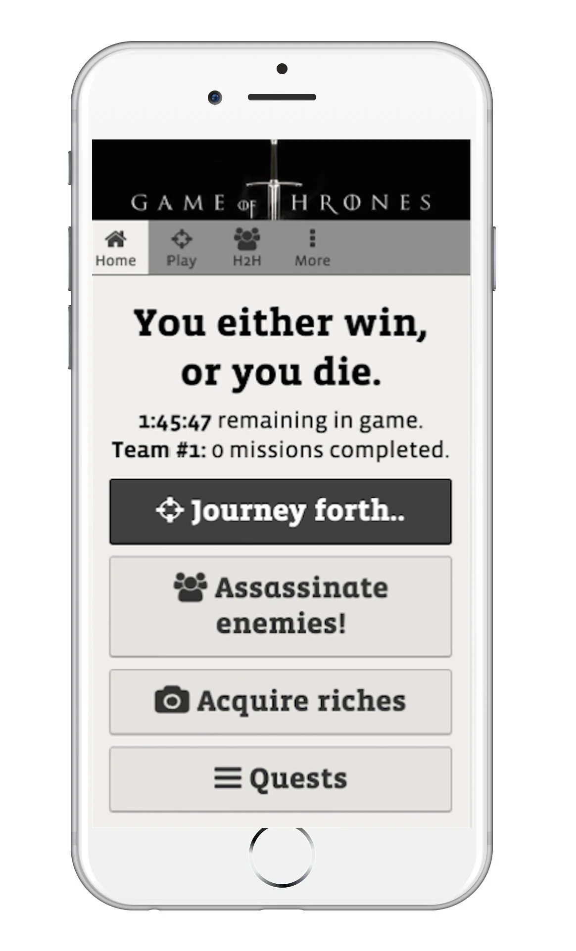 In April 2016, GoT fans were invited to play a live-action, interactive game that turned Austin, San Francisco & Atlanta into Westeros. Players in all three cities had an opportunity to dress as their favorite characters and compete against each other for access to the coveted Season 6 premiere screening hosted by HBO.